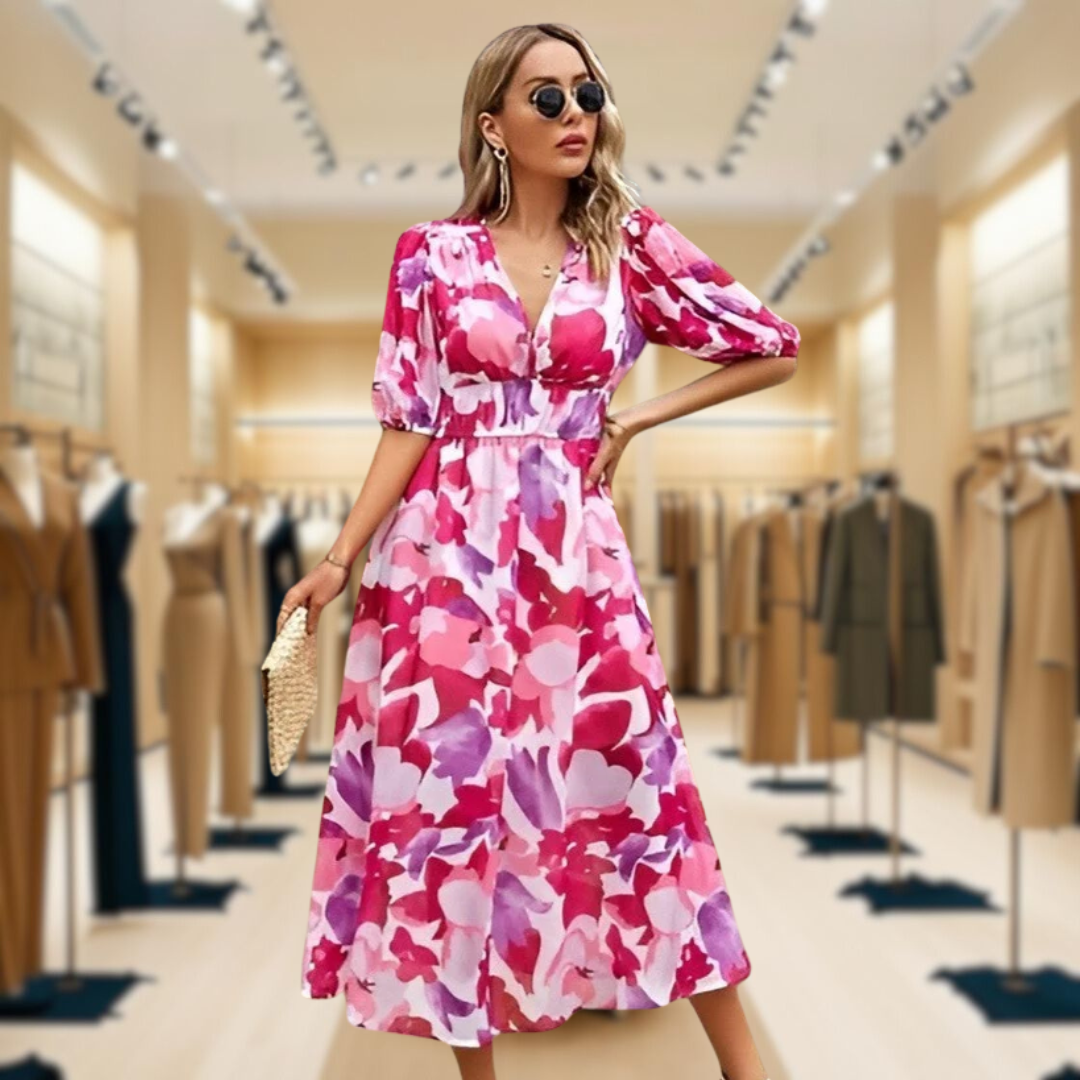 Lara™ | Flattering Floral V-Neck Dress