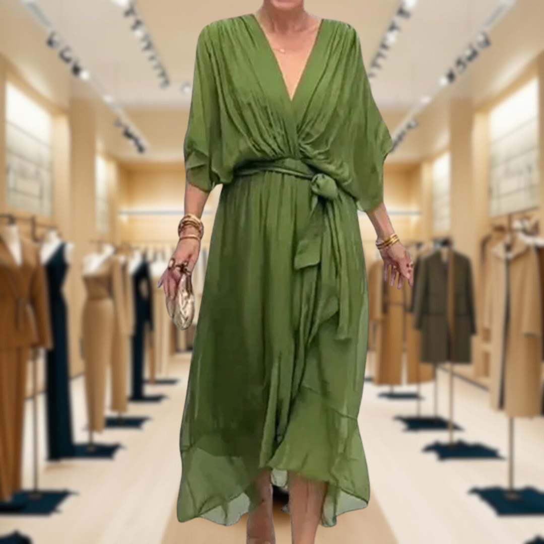 Elevate your style with the Sabrina Plus-Size Casual Evening Dress, the perfect blend of elegance and allure. Designed to accentuate every curve with grace and charm, this dress features a deep V-neckline and half sleeves, offering a balanced and flattering fit for all body types. Its flowy silhouette, enhanced by a waist-cinching belt, creates a timeless look that’s perfect for formal occasions, casual evenings, or a night out.